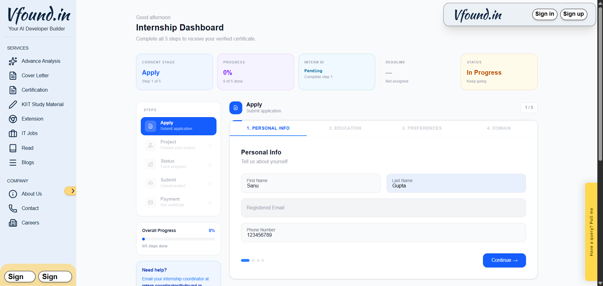 ~ VFound does not issue generic participation certificates. Every intern completes a real, industry level project that is individually reviewed and verified by our team of 70+ domain expert mentors. Your profile is approved only after your project submission passes mentor evaluation making every VFound certificate a verified proof of real-world capability.